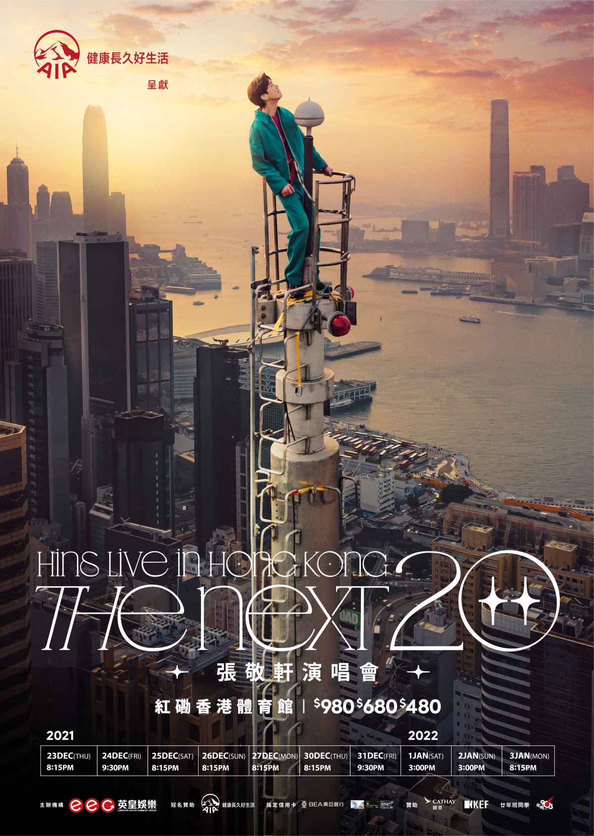 張敬軒(軒仔)將於今年12月23-27日、30-31日及次年1月1-3日於紅館舉行十場跨年演唱會,慶祝入行二十周年。是次演唱會海報非常驚艷,畫面是張敬軒攀登上一座位於利園一期樓頂最高點超246米(約64層高)的避雷針頂,代表人生只要勇敢面對自己恐懼,鼓勵大家面對疫境,要勇於前行。
