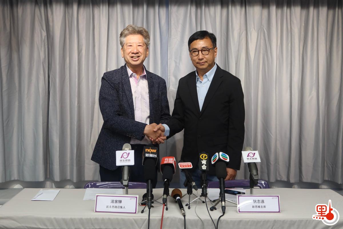 「民主思路」召集人湯家驊與「新思維」主席狄志遠今日(22日)共同舉行記者會,宣布就新一屆立法會選舉達成共識,同意假若兩組織有任何成員參選,「民主思路」與「新思維」會盡量互相協調,以聯合陣營的方式推動選舉工程,向全港市民推介互相支持的候選人,並形容雙方此次合作為「拍拖」。