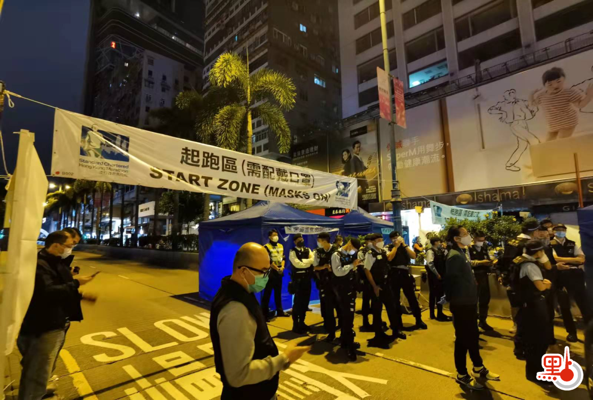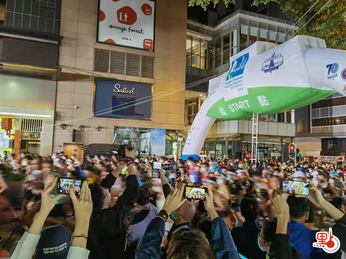 因新冠疫情兩度延期的「渣打香港馬拉松」於今日(24日)復辦,十公里及「半馬」精英組賽事,已於清晨5時45分在尖沙咀開跑。早前有反中亂港分子計劃利用體育活動滲透危害國安,黃店「Chickeeduck」老闆周小龍在其社交平台鼓吹可為渣馬選手的運動衫免費印上「香港加油」燙章,字體樣式更與黑暴的「港獨」標語一致,並意圖煽動反政府情緒。點新聞記者今晨到現場了解情況,現場氣氛平靜,亦未有發現身穿相關的運動衫的人士出沒。