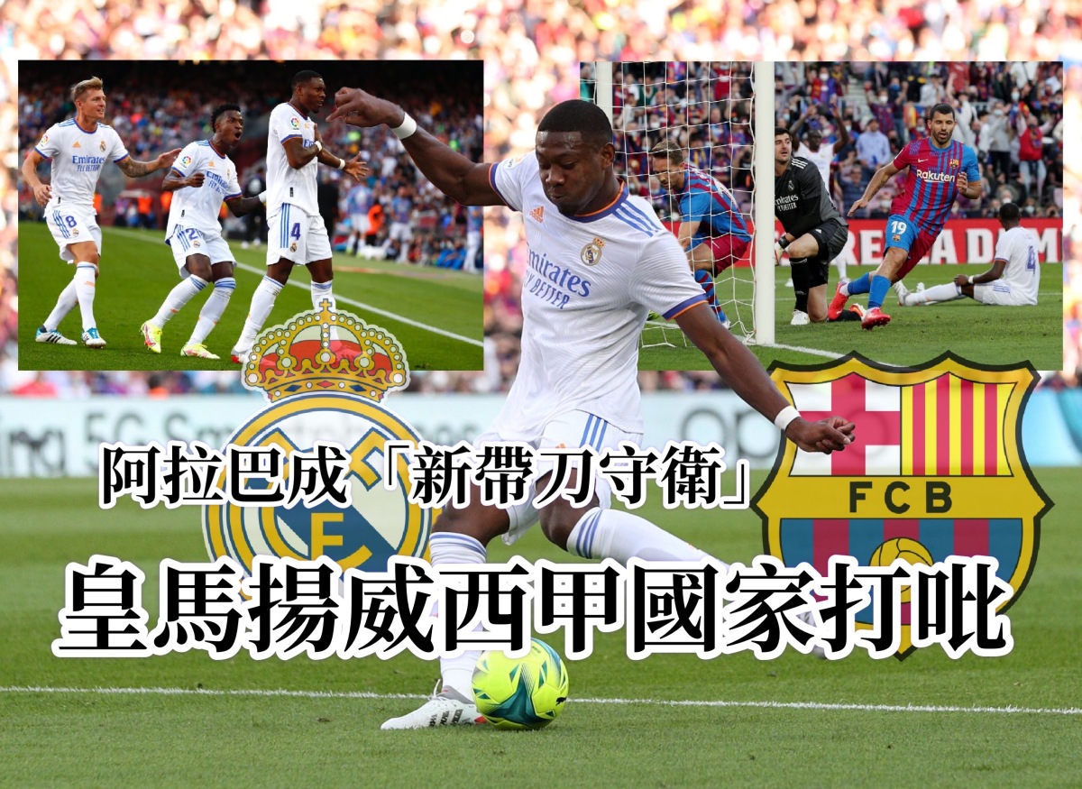 昔日皇馬擁有助攻力極強的「帶刀守衛」沙治奧拉莫斯,如今他已轉投巴黎聖日耳門,誰會料到繼承他穿上4號球衣的阿拉巴,竟能在西甲國家打吡戰,作客為皇馬射入先拔頭籌的一球,協助「銀河艦隊」最終以2:1力克宿敵巴塞隆拿。
