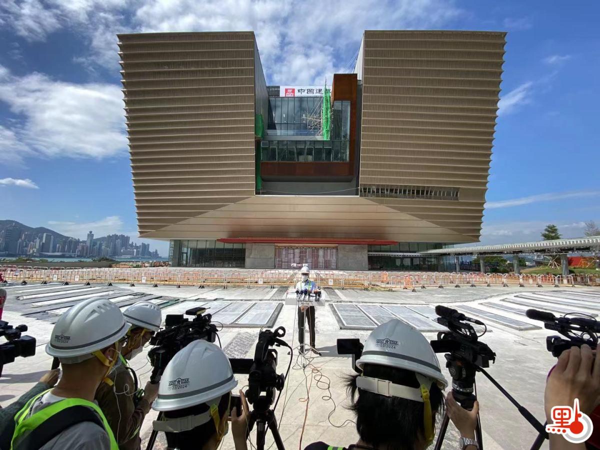 「時代精神耀香江」之大國建造民生工程走訪活動,今日(26日)首站來到在建中的香港故宮文化博物館(香港故宮)。香港故宮建設項目在2019年由中國建築工程(香港)中標承辦,中建香港副總經理黃江指出,作為北京故宮博物院在內地以外的首個合作項目,香港故宮承載着文化交流的重大意義。香港故宮項目負責人王勇表示,建築設計「以現代語言重新詮釋故宮元素」,符合香港「中西合璧」文化氣息,一系列新穎設計施工難度極高。香港故宮文化博物館館長吳志華表示,非常有信心香港故宮能於明年7月開幕,成為香港回歸25周年的重要項目。