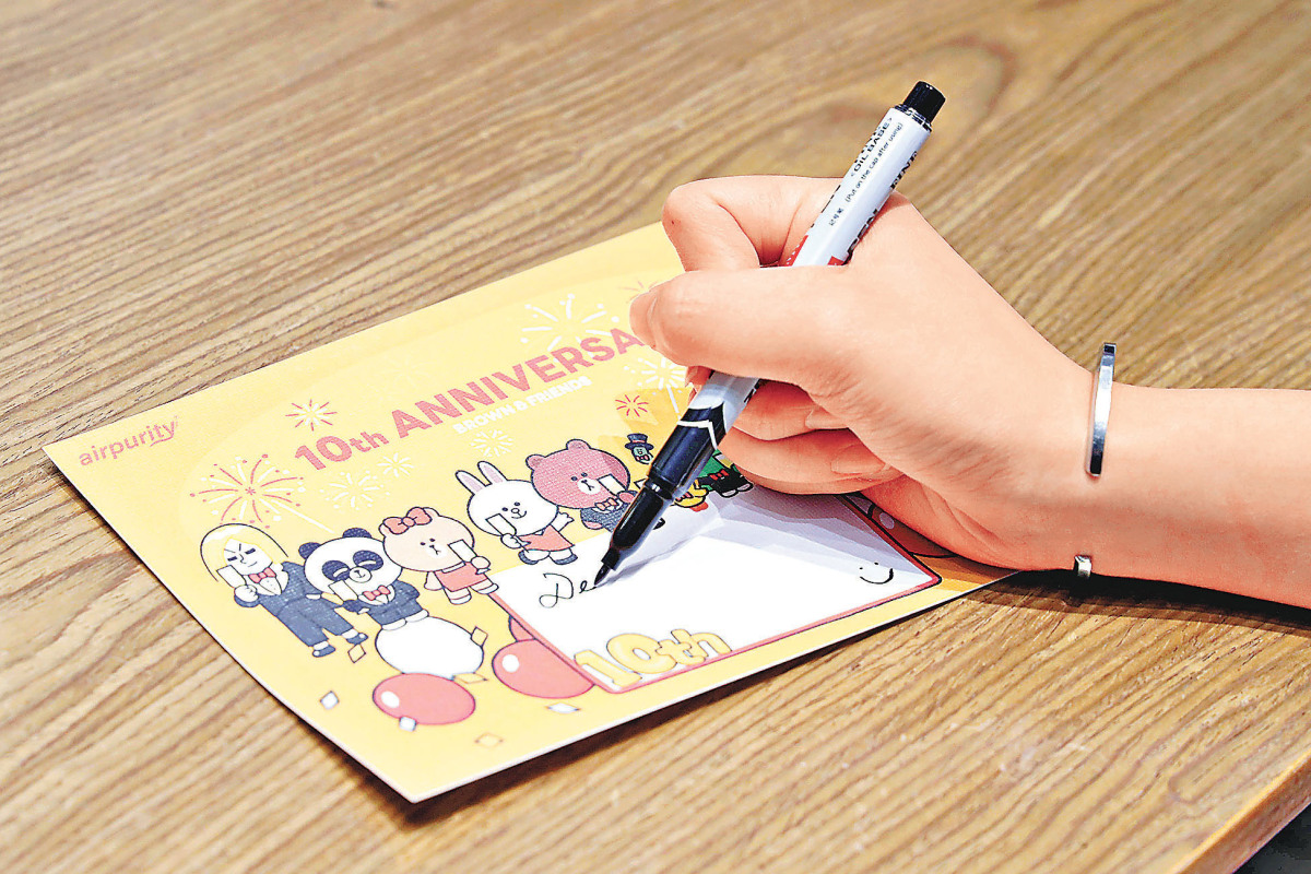 BROWN & FRIENDS今年踏入10周年,與AirPurity聯手推出兩套全新「BROWN & FRIENDS 10周年慶典系列」及「BROWN & FRIENDS香港主題系列」貼紙,可愛模樣令人歡喜若狂。每個系列共有9個不同款式,分別推出兩種組合供選擇,包括1張A5大小的Jumbo size連3張電話貼的套裝,及5張電話貼套裝。A5大小的Jumbo size貼紙更可讓市民發揮創意,用油性筆在上面寫字畫圖。