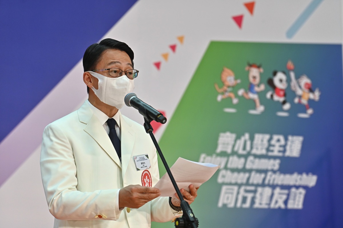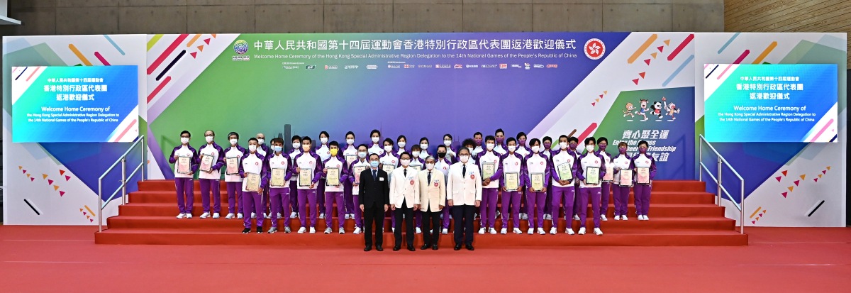 康文署署長劉明光在致辭時表示,香港運動員在疫情下備戰今屆全運會,遇上前所未有的挑戰,但他們憑着堅毅的精神,取得佳績。香港運動員在近年的大型國際賽事取得佳績,為香港體壇寫下光輝一頁。市民可在電視收看本屆全運會的多項賽事,除了感受運動員的拼搏精神,更加深了對全運會的認識。