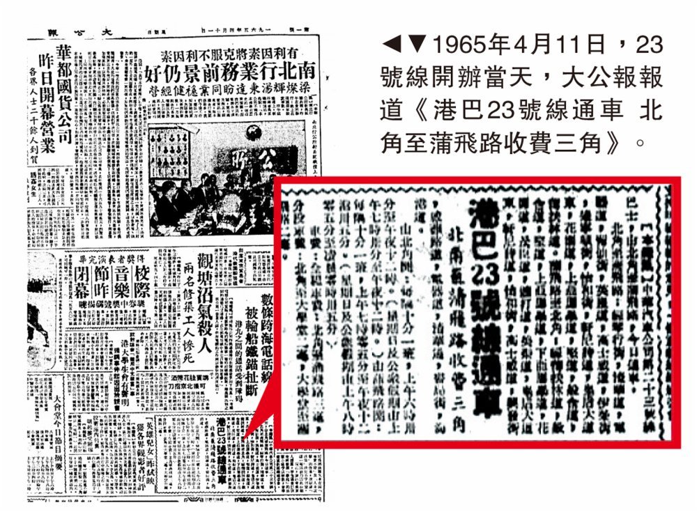 23號線(北角碼頭來往蒲飛路)是港島半山區老牌巴士路線,1965年4月11日通車,此前並無巴士線來往半山至灣仔、銅鑼灣。本路線出現,是因為半山區中小學名校林立,不少居於北角、於半山就讀的學生,須乘搭2號線或10號線前往中區,再轉乘3號線或12號線返校,眾多家長希望巴士公司開辦「北角半山巴士專線」,23號線通車乃一突破。當年23號線需求以上、下課時段最為明顯,繁忙時間每5分鐘一班,香港大學師生也是重要客源。