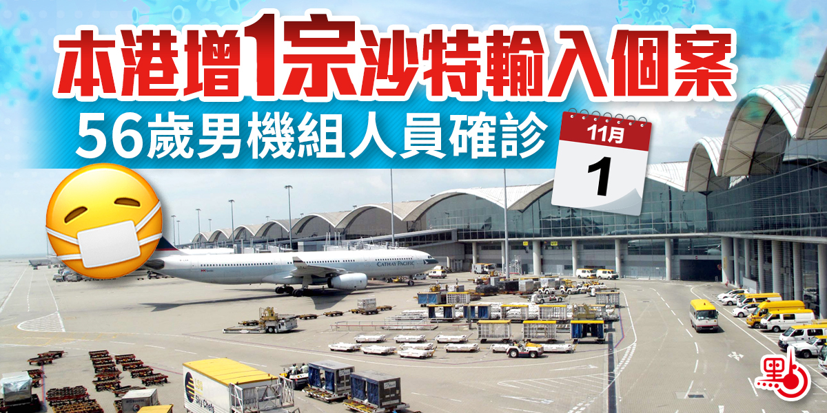 衞生防護中心表示,新增個案涉及變異病毒株的感染,他10月23日從沙特經航班SV982抵港,10月29日發病,於竹篙灣檢疫中心確診,檢出帶有L452R變種病毒;1月16日及2月16日在沙特接種兩劑復必泰。