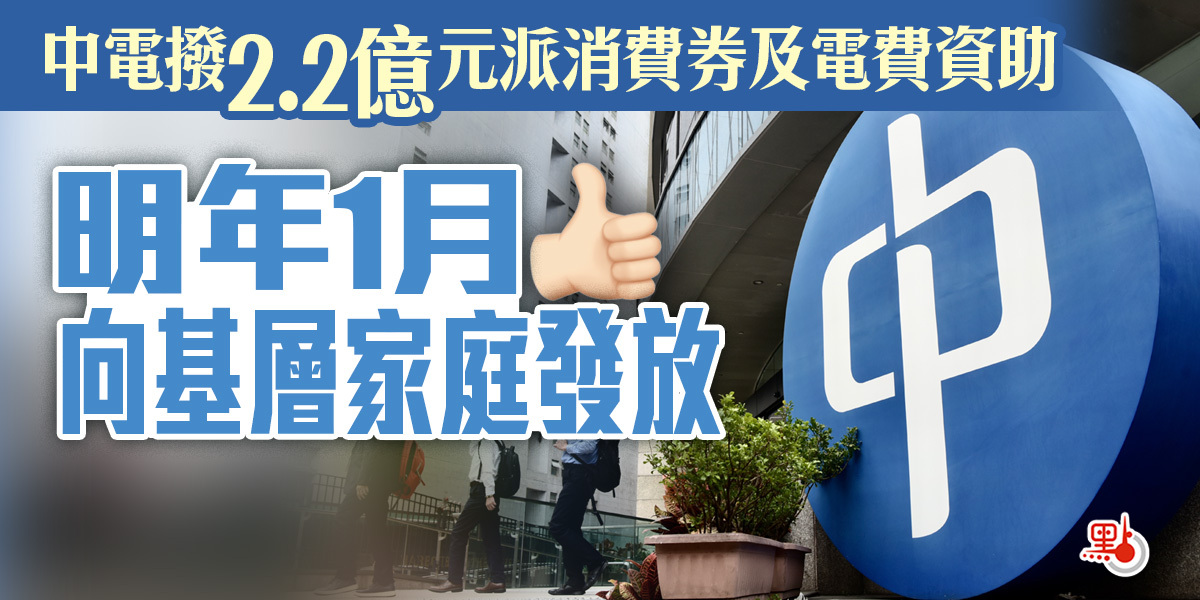 新冠疫情緩和,但經濟仍未完全復甦。中電今日(4日)公布,中電社區節能基金明年將撥出約2.2億元援助有需要人士,包括再度推出8000萬元中電消費券,明年1月向近80萬個家庭,包括低用電量住宅客戶、享有長者電費優惠客戶及1萬個劏房住戶,各派發總值100元的消費券,帶動本地消費及支援弱勢社群。受惠者可於超過2800間參與計劃的零售商店和食肆使用,包括食肆、餅店、雜貨店、電器舖、藥房、洗衣店、理髮店和社企零售商店等,為期6個月。