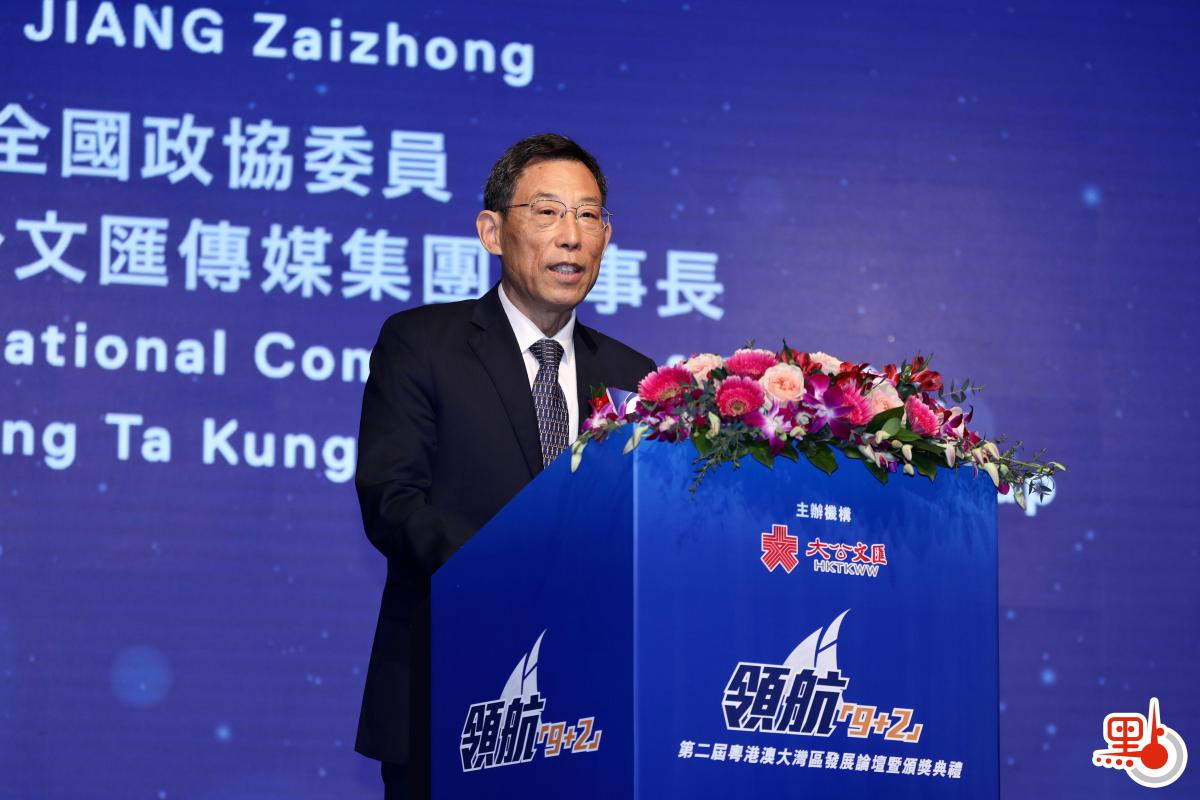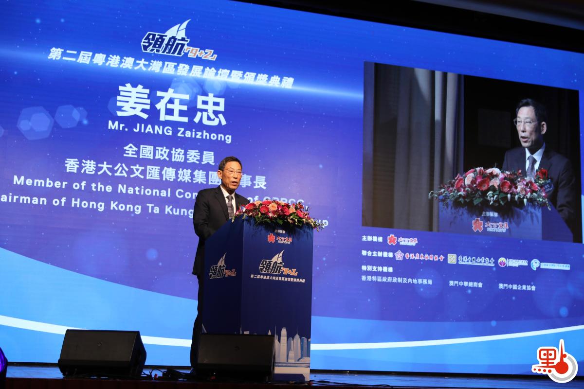 由香港大公文匯傳媒集團聯合香港廣東社團總會、香港中國企業協會、香港中資銀行業協會、大灣區金融科技促進總會共同舉辦的「領航『9+2』·第二屆粵港澳大灣區發展論壇暨頒獎典禮」,今日(5日)上午在香港舉行。全國政協委員、香港大公文匯傳媒集團董事長姜在忠致辭表示,在社會秩序由亂及治,經濟發展恢復生機的同時,我們也應當清醒地看到,目前香港仍面臨產業發展單一、經濟結構固化、增長動力不足等問題。破解這些問題,需要依靠發展這把「總鑰匙」,利用好粵港澳大灣區建設這一重要平台,擁抱新經濟浪潮,融入國家發展大局。