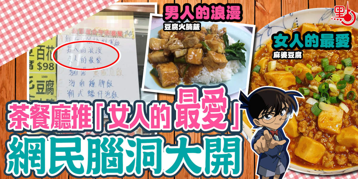如果說「豆腐火腩飯」是男人的浪漫;那麼,女人的最愛,你會聯想起什麼呢?有網民在「香港討論區」發帖問「女人的最愛係咩?」,並上載一張相片,可見荃灣一間茶餐廳的午餐餐牌,B餐是「男人的浪漫」,C餐就是「女人的最愛」,咁究竟C餐係咩呢?不少網民腦洞大開,紛紛估係「番茄火腿飯」、「粟米肉粒飯」、「甜椒芫茜蜜餞乳豬/鴿飯?或者木瓜排骨/雞腳(湯)飯?」。