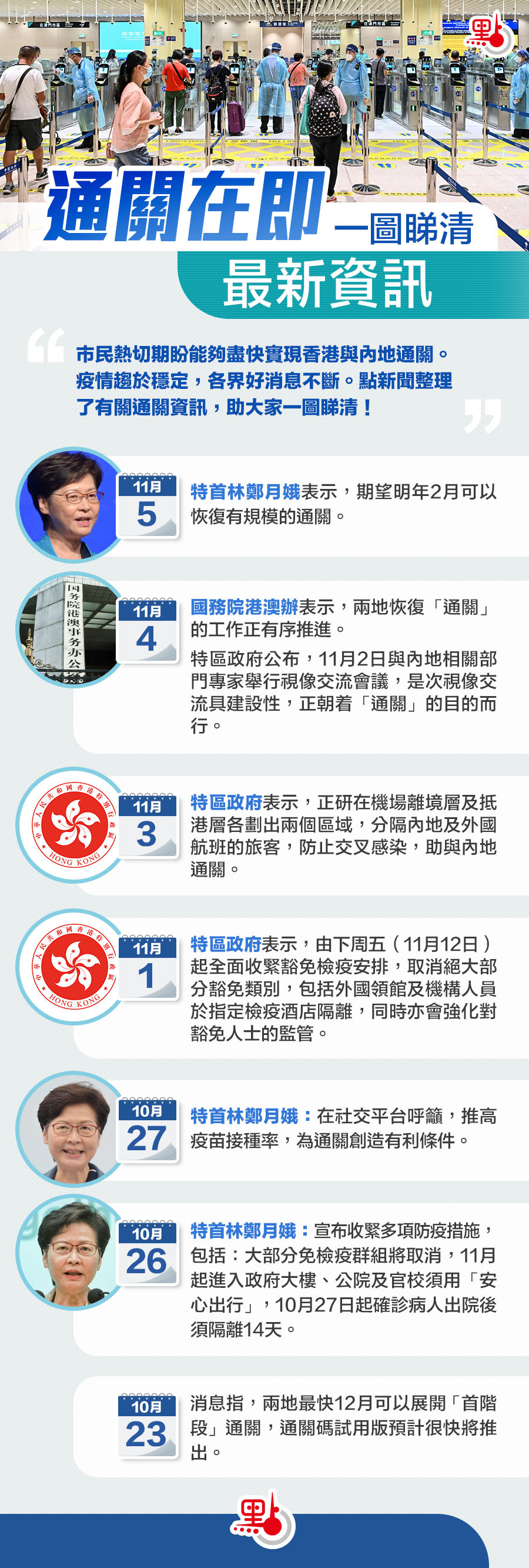 本港疫情受控,市民熱切期盼能夠盡快實現香港與內地通關。疫情趨於穩定,各界好消息不斷。點新聞整理了有關的通關資訊,助大家一圖睇清!