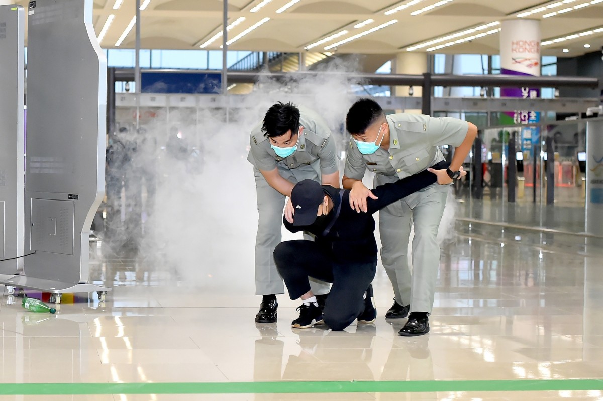 是次演習有近一百名海關及消防處人員參與,並分兩個部分進行。第一部分模擬海關人員在旅檢大樓內進行旅客清關時,發現一名旅客懷疑與恐怖活動有關,即時通報跨部門反恐專責組跟進。