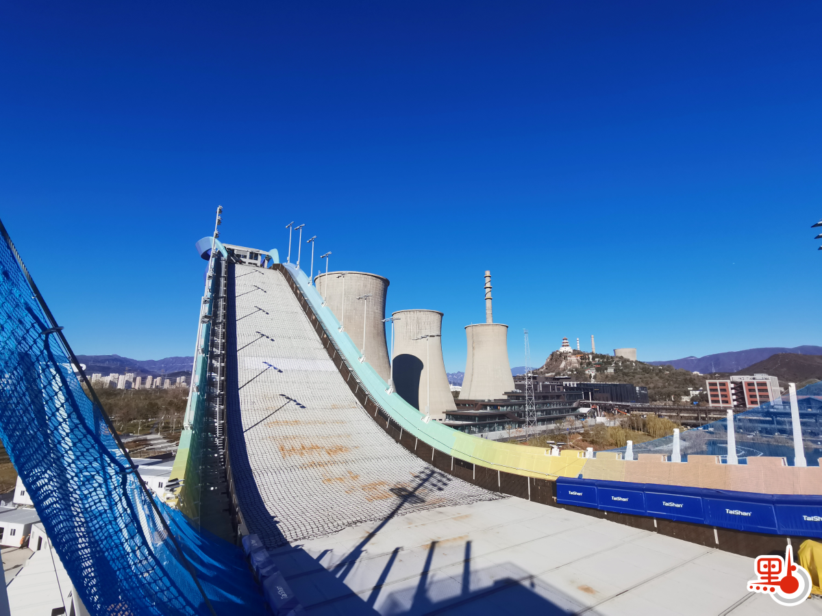 首鋼滑雪大跳台位於首鋼老工業園北區,場地由北向南依次分布着原首鋼發電主廠房、冷卻塔及原首鋼製氧廠廠房,充分利用了大跳台周邊首鋼原有老廠房和工業構築物進行修繕與改造,滿足冬奧會比賽、轉播、觀眾服務等多項功能。據了解,原來首鋼老廠區的冷卻泵站,在冬奧會期間將變身成為驗票安檢大廳和賽事管理辦公區,賽後將被改造為多功能綜合樓,為未來的首鋼滑雪大跳台體育公園提供配套服務功能;舊時的制氧主廠房在冬奧會賽時期間被改造成為綜合服務樓。