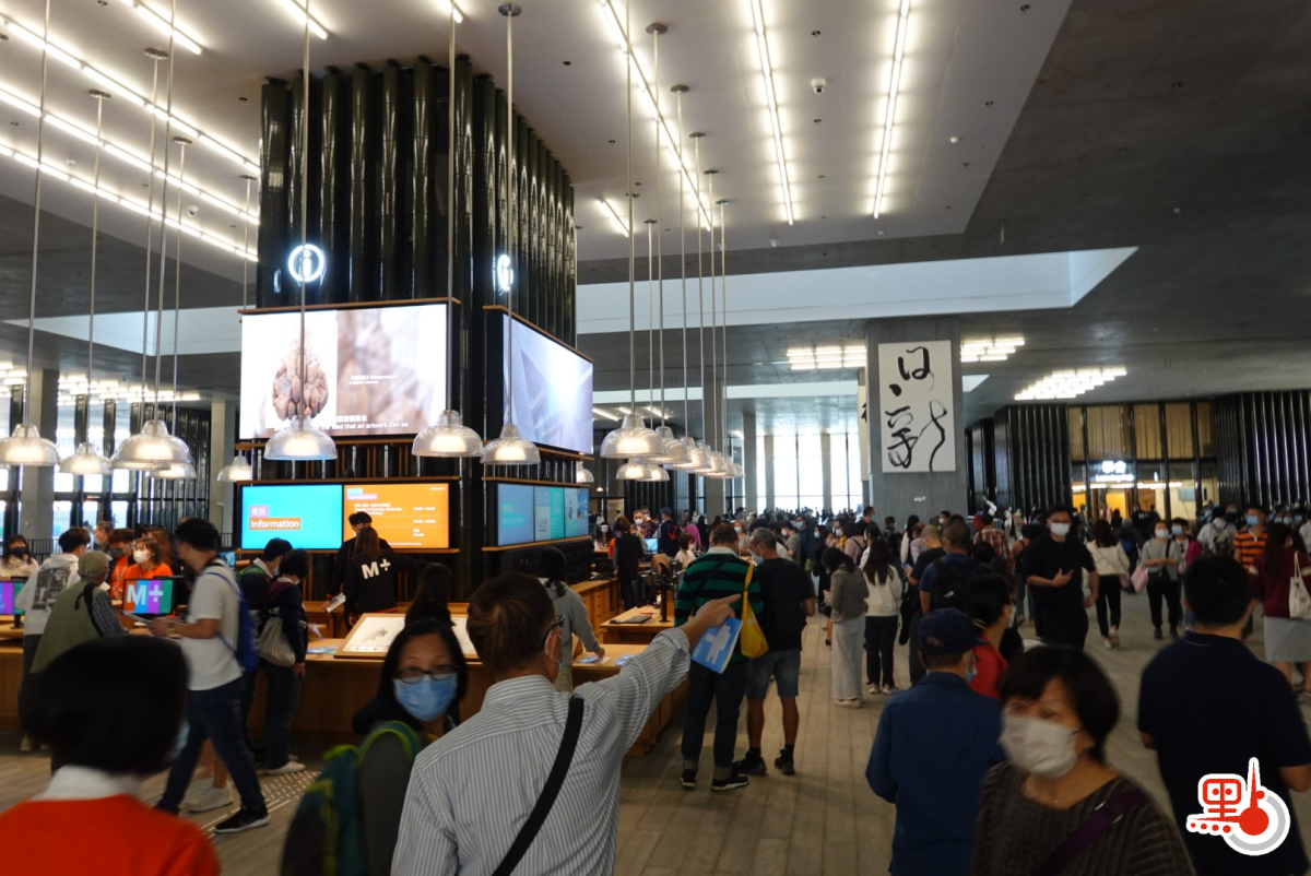 今日(12日)是M+博物館向公眾開放的首日,觀眾最早可於10點入場,出示預約二維碼以及掃描「安心出行」入場參觀。點新聞記者在入場時觀察到,儘管現場觀眾眾多,但秩序井然,即便是無預約的觀眾,亦不需排隊很久便可入場。