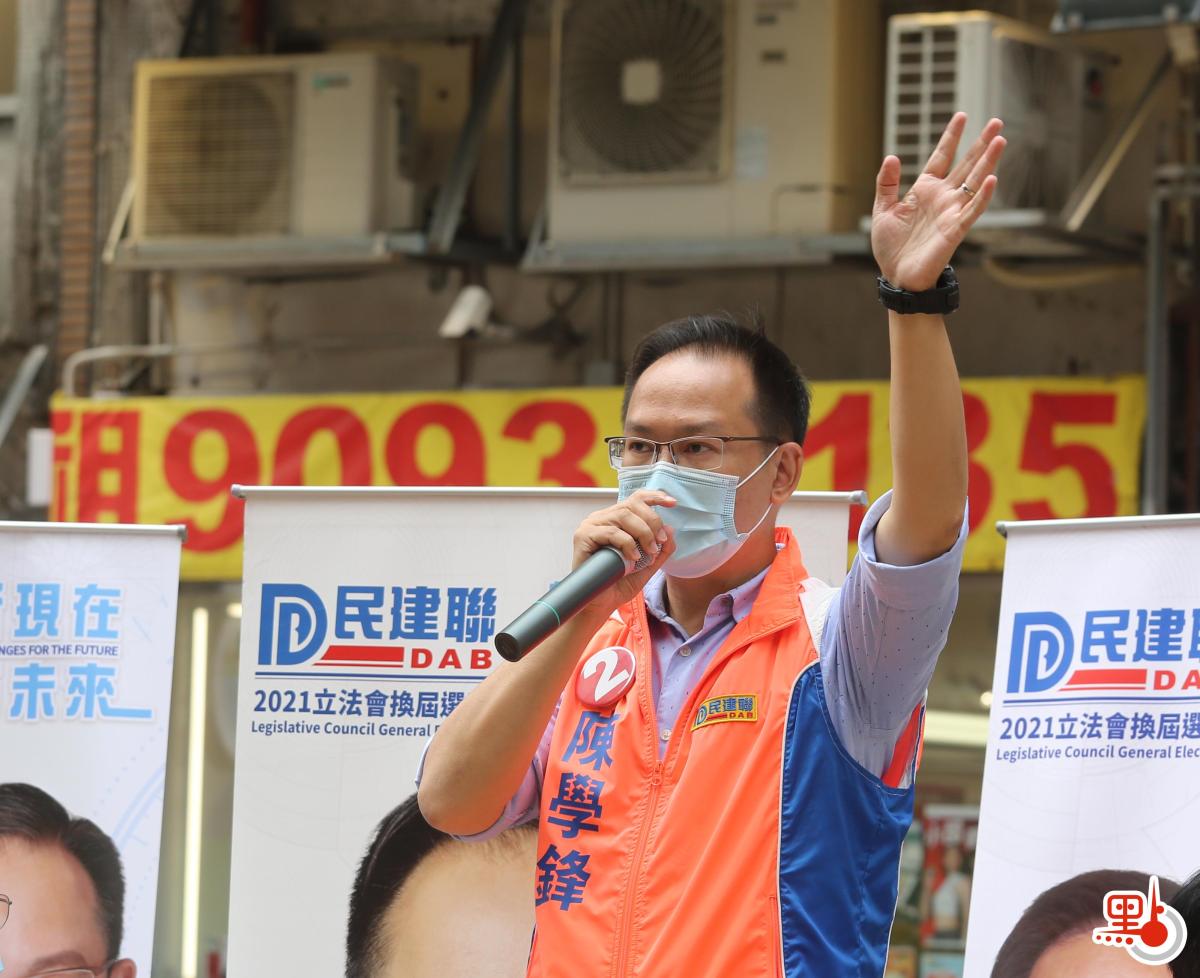 陳學鋒表示,在新選舉制度下港島西選區範圍涵蓋中西區、南區及離島,範圍較大,而整個選舉工程時間較短,因此近期頻密「落區」,希望獲得支持。在最近的「落區」的過程中,他感受到市民對於選情開始有所關注,開始思考將選票投給誰,因此會更佳努力拉票。他指出,投票是表達意見的一種方式,呼籲市民踴躍投票,支持落實「愛國者治港」。