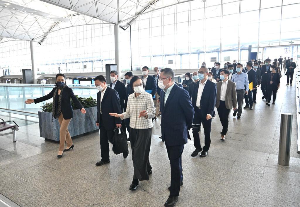 今早,內地專家團首先到香港國際機場,實地了解機場「外防輸入」的防疫抗疫工作,致力減低病毒輸入香港和內地的風險,包括內地航班及國際航班的分隔措施、機場員工已接種疫苗及接受加密檢測的要求等。專家團亦到訪食環署食物安全中心設於機場國泰航空貨運站內的食物檢驗辦事處,考察抽驗進口冷凍食品的工作。