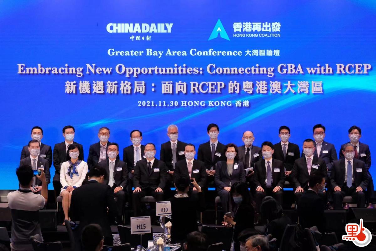 由中國日報和香港再出發大聯盟合辦,主題為「新機遇新格局:面向RCEP的粵港澳大灣區」的大灣區論壇今日(30日)舉行,論壇將會着重探討文化旅游業、金融服務及專業服務等在內的不同行業,該如何共同合作以把握粵港澳大灣區的發展機遇,同時探討可持續文化遺產的發展及開發大灣區旅游業的合作,吸引逾400名政商學界人士以線上線下結合的方式参會。全國政協副主席梁振英因須前往北京開會,遂以視像方式發表主旨演講,對未能親身出席論壇感抱歉。