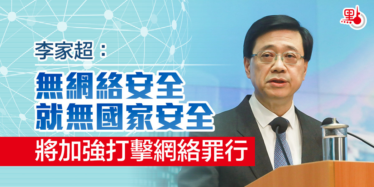 李家超說,在反修例事件期間,反中亂港分子,在網絡散播「港獨」及分離主義等極端思想,亦有人發於虛假信息及煽動仇恨,荼毒市民、禍害社會。他強調,政府會加強打擊網絡罪行,檢視維護網絡安全及虛假訊息方面的法例,加強香港關鍵資訊基建的網絡安全,打擊在社交媒體散播虛假訊息及仇恨言論,確保全面維護國家安全,保障網絡安全。