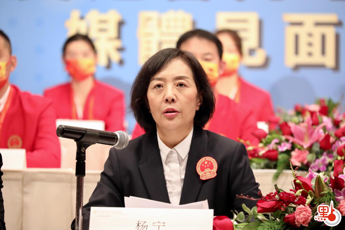 國家體育總局副局長楊寧表示,非常高興代表團能與香港市民見面。她提到張家朗奪得金牌,展現香港健兒奮發進取的時代風采和香港青年昂揚的精神風貌。另外,乒乓球賽場,當內地選手和香港選手同時參加升旗儀式後合影,是一種中國青年團結奮進的良好形象和激勵。