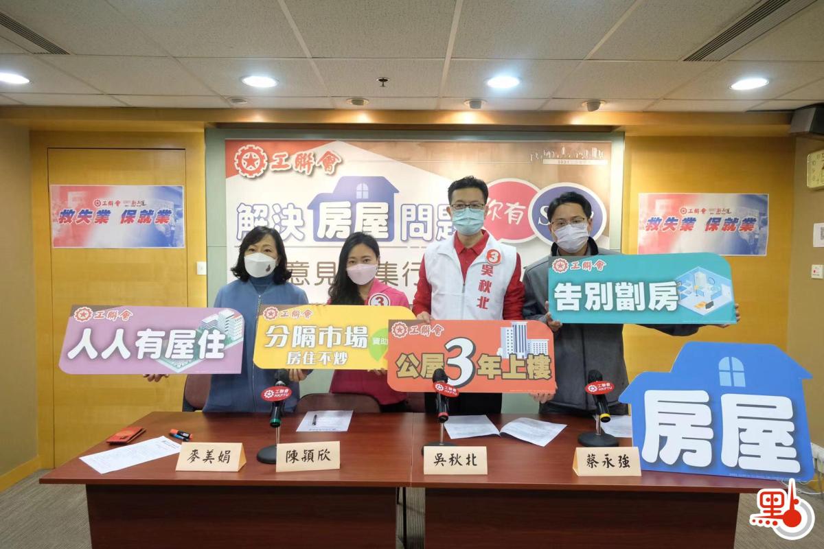 工聯會早前舉行「解決房屋問題你有SAY!」的意見調查,今日下午(6日)召開記者會公布調查數字,近33%的受訪者最關注增建公屋三年上樓問題。工聯會提出8大建議,期望當局提升居住質素、降低市民的居住成本。
