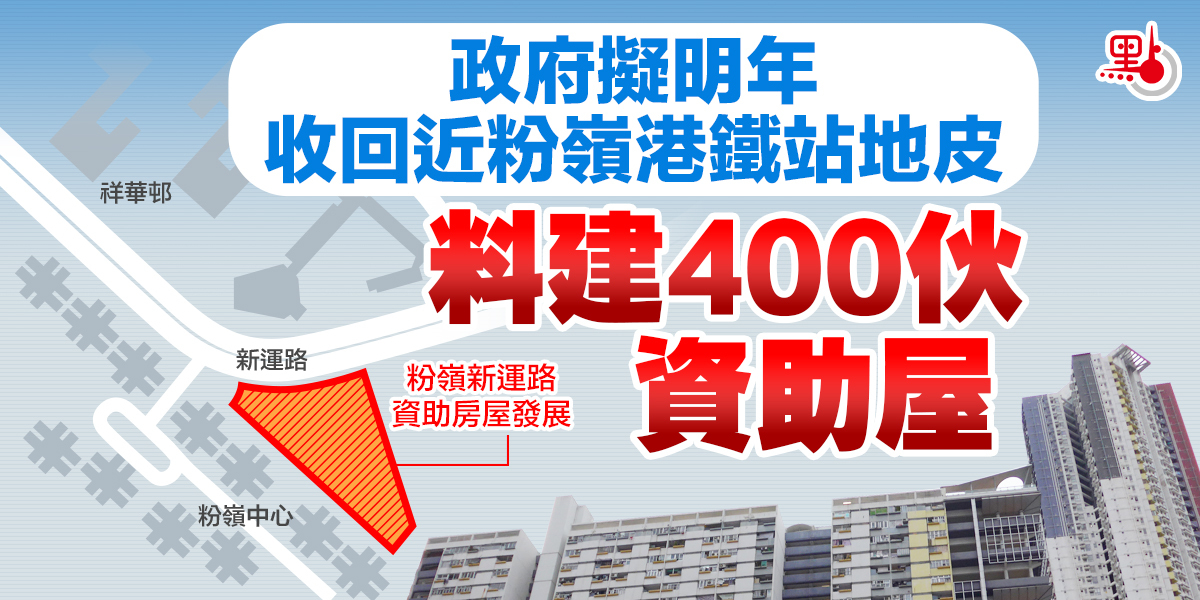 政府早在5月公布將引用《收回土地條例》,收回分別位於粉嶺及元朗的三組地塊內的私人土地作資助房屋用途;其中粉嶺新運路用地鄰近港鐵站,料可提供約400個單位。地政總署料於明年上旬尋求行政長官會同行政會議批准有關收地計劃。