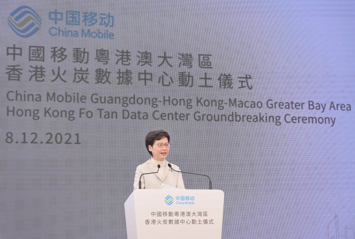 林鄭指出,國家「十四五」規劃綱要提出支持香港建設國際創新科技中心,本港的電訊基建完備,對外電訊設施容量處於國際領先水平,5G服務自去年推出覆蓋已超過九成。她表示,政府今年積極推出優惠措施,為業界建立數據中心「拆牆鬆綁」。