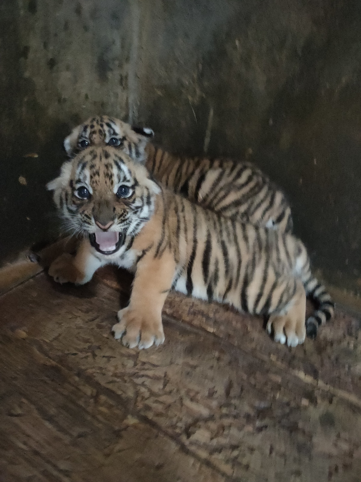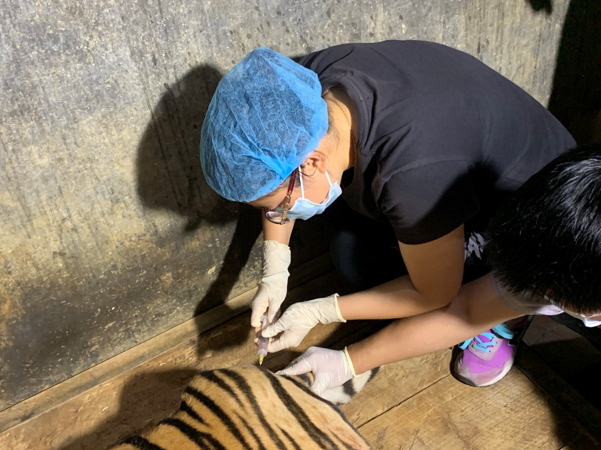 我也真的很爭氣,三兄妹中我是第一個長牙,走路也是走得最好的。在我3月齡的時候,「奶爸」為我抽血,血樣送到四川成都大熊貓中心。全世界的華南虎出生3月齡時都要抽血到那裏去做基因親子鑒定,以確認我們的血統純正。