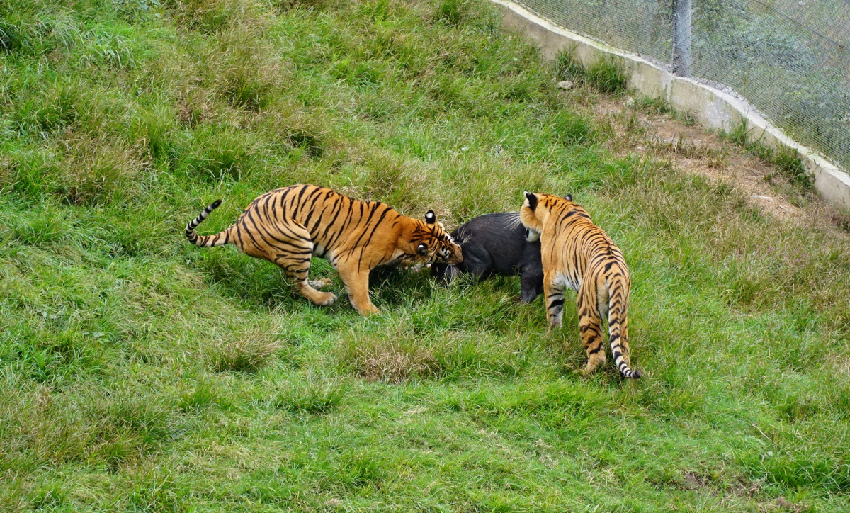 從2001年開始人工繁育出「虎二代」至今,虎研所在高海拔原野式環境中散養繁育了66隻華南虎,成活率70%。尤其今年出生了9隻虎寶寶,是歷史上出生華南虎最多的一年。現在,整個虎研所中將近40隻華南虎,已經有20隻可以獵殺野豬,簡直是我們的驕傲。