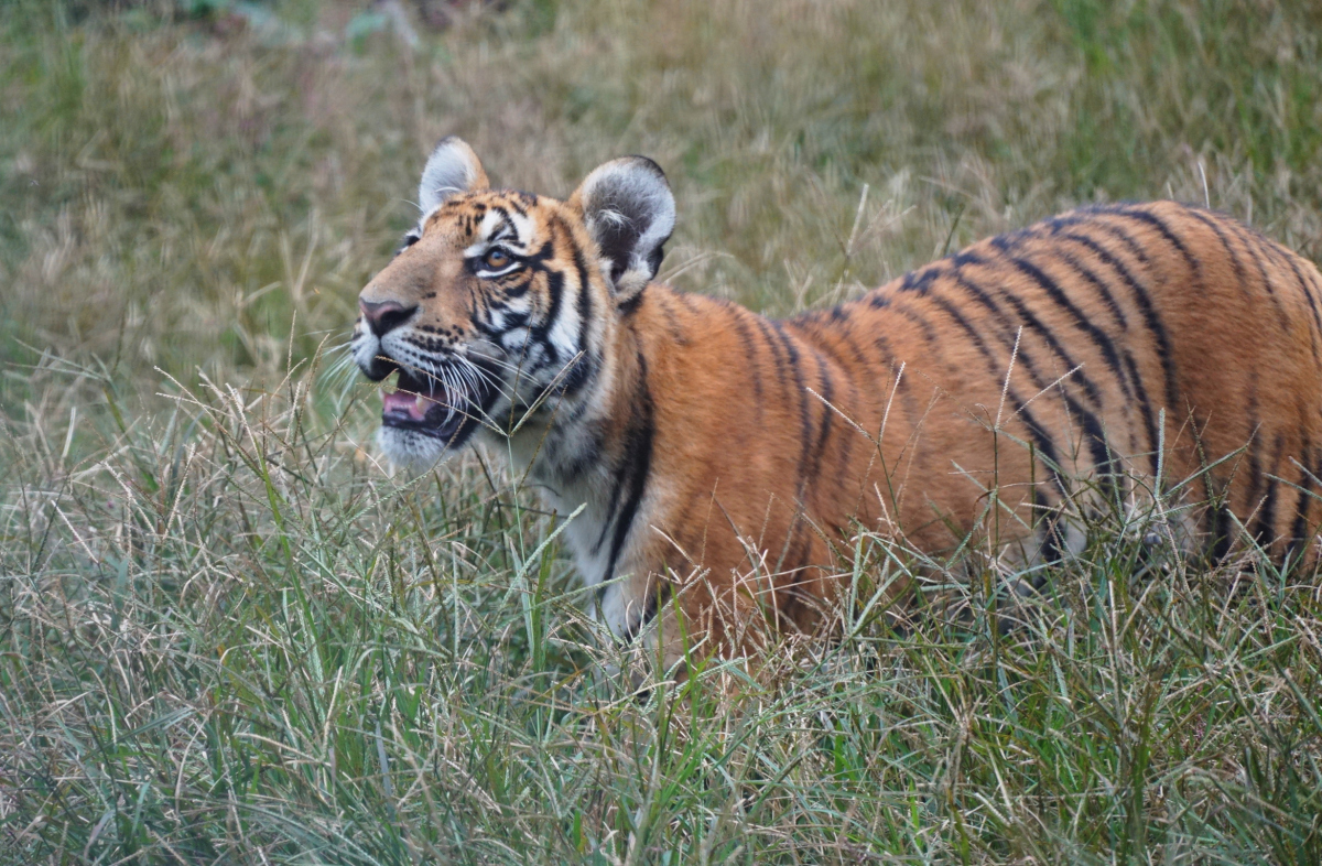 我們人工哺育的華南虎,一般1月齡開始,奶水中會添加肉沫,長大一點後「奶爸」會給我們提供野雞、野兔,供我們學習捕獵。到了6月齡進入亞成體才會斷奶,然後會有羊或者黃麂等體型大一點的動物供我們捕食,幫助恢復野性。2歲半我們就成年了,這時候會有更大型的動物,例如野豬之類的讓我們捕獵。