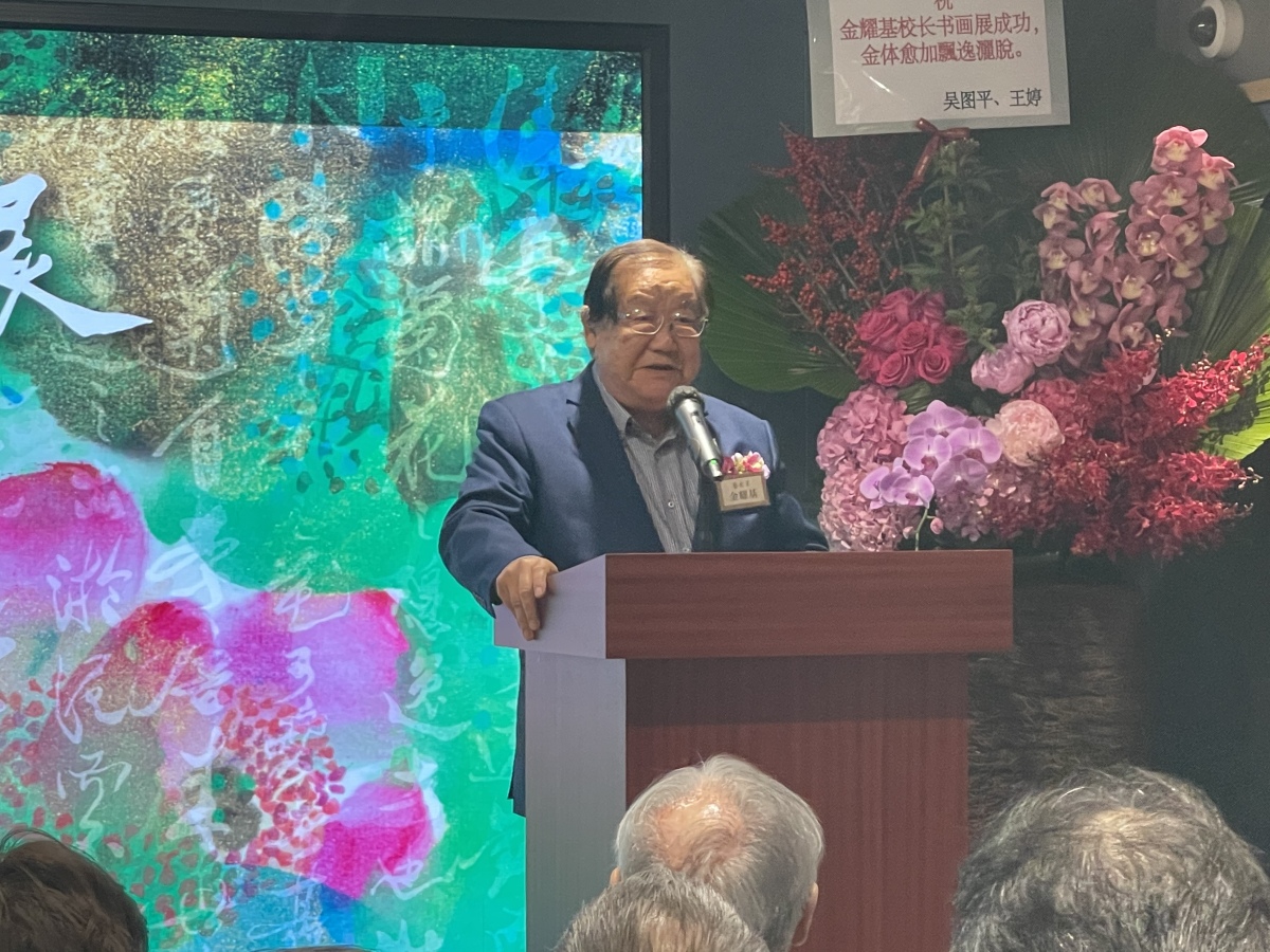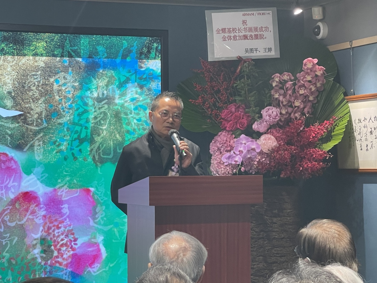 致辭中,金耀基表示,自己的一生都是為書寫而生,雖然現在人們寫字已甚少使用毛筆,書法似乎已失去了實用性,但亦因為實用性逐漸消失,才更能彰顯書法的藝術性,是真善美的完美結合。
