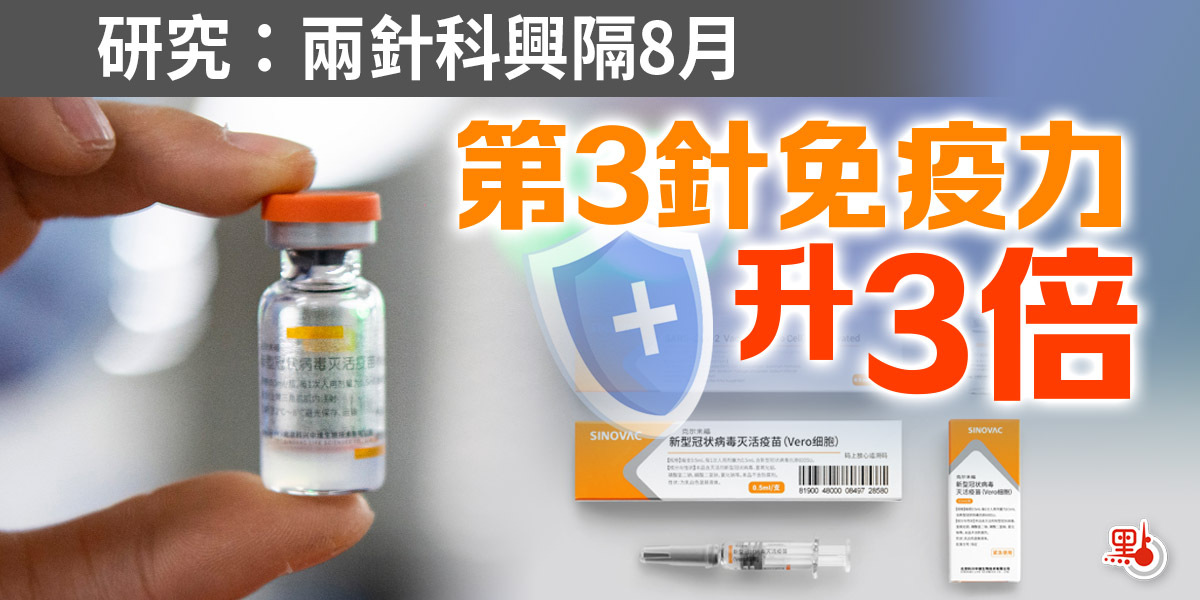 研究團隊表示,第3針科興疫苗誘導的免疫水平出現快速而強勁的反彈,會比打兩針提供更持久免疫力和更高保護水平。