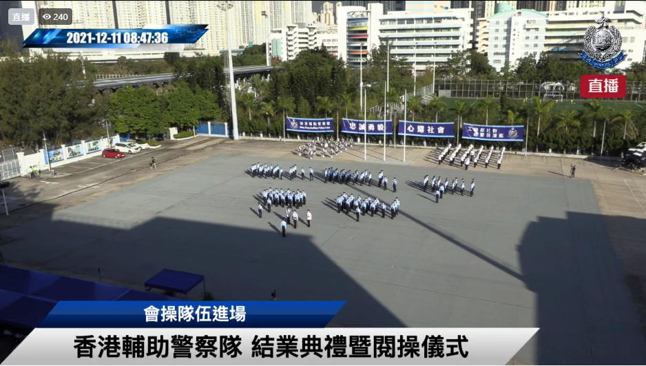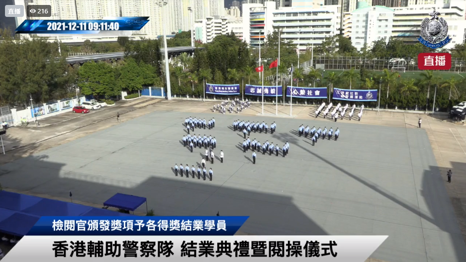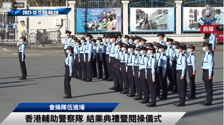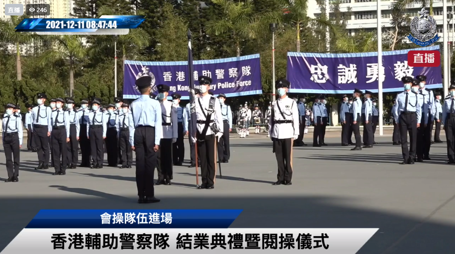 香港輔助警察隊今日 (11日) 舉行結業會操,警務處副處長(管理)郭蔭庶先生擔任是次會操的檢閱官。會操的指揮官江偉鋒輔警總督察帶領41名剛完成輔警警員基本訓練課程,及65名正接受基本訓練課程的學員參與會操。