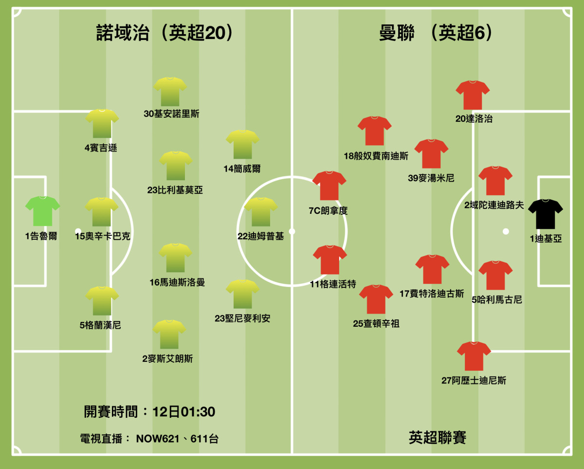 曼聯看守主帥蘭歷克毋須找風水師傅都能預示自己行運。他在曼聯最需要重組時來到這裹,而曼聯在未來12輪英超賽事,都遇到中下游隊伍之下,他有望締造出令管理層滿意的成績,說不定成為「蘇斯克查第二」,獲得「坐正」長期擔任主帥之職。他們今仗遇到「虛火燒盡」的諾域治,客勝絕對有把握。(香港時間周日凌晨1時30分開賽,NOW621台直播)