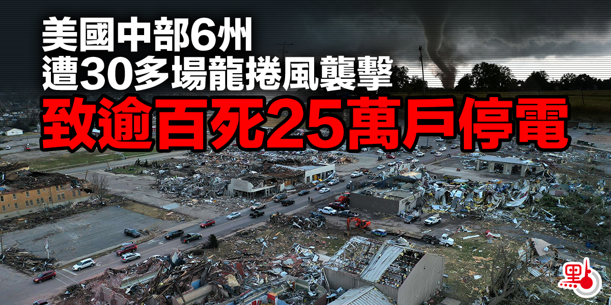美國中部的肯塔基州、伊利諾伊州、阿肯色州、密蘇里州和田納西州等6個州當地時間10日夜間至11日凌晨遭遇至少30場龍捲風襲擊,現時已造成逾百人死亡。美國總統拜登表示,這可能是美國歷史上最大的龍捲風災難之一,他將在不影響救援的時候去往災區。