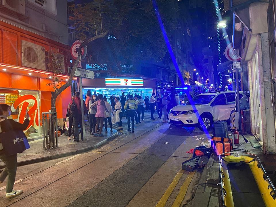 有閉路電視片段可見事發情況,其中2名女途人疑在路邊聊天時,未留意私家車由卑利街溜後高速衝至,猶如「打保齡」般被撞倒,有人更曾滑行數米及疑被車輾過。私家車撞向士丹頓街行人路後停下,意外中共導致8人受傷。根據醫管局資料,一名27歲法國籍女傷者在瑪麗醫院留醫,情況一直危殆,惜延至昨日下午6時35分證實不治,另有1名31歲法國籍女子及1名男子留醫,其餘5名傷者已出院。