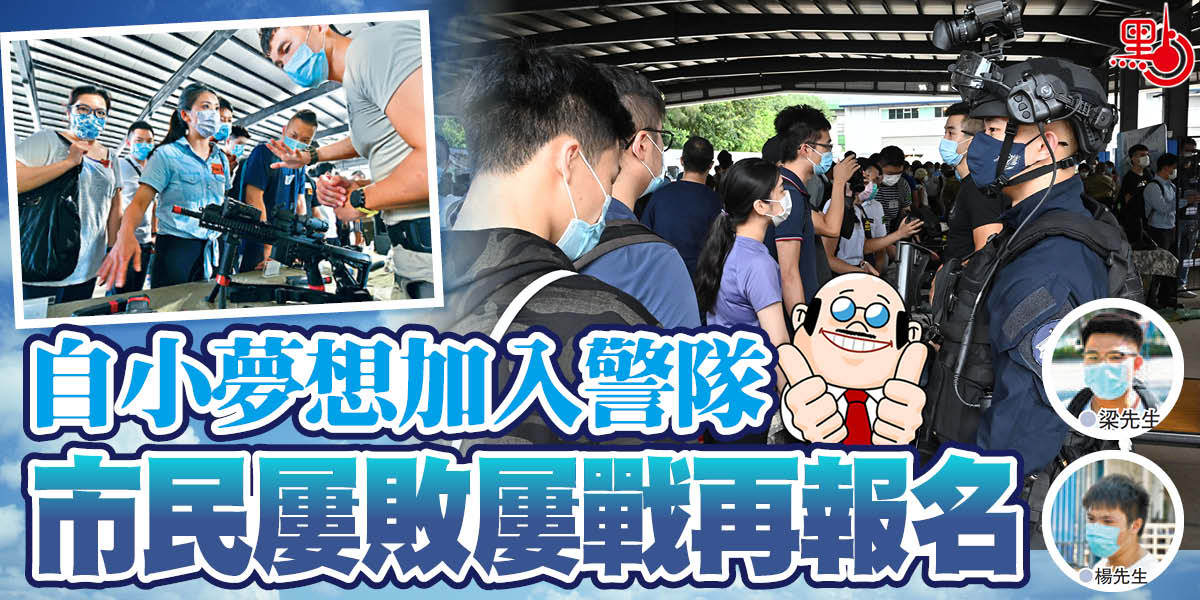 23 歲的梁先生更曾於3 年前入過警察學堂,最終因筆試失準而要中途退出,昨日再到「體驗日」了解應考「貼士」,並再度報名投考警員。梁先生之所以堅持不懈是因為加入警隊是他自小的夢想:「做警察是我的初心,無論如何都想再嘗試吓。」