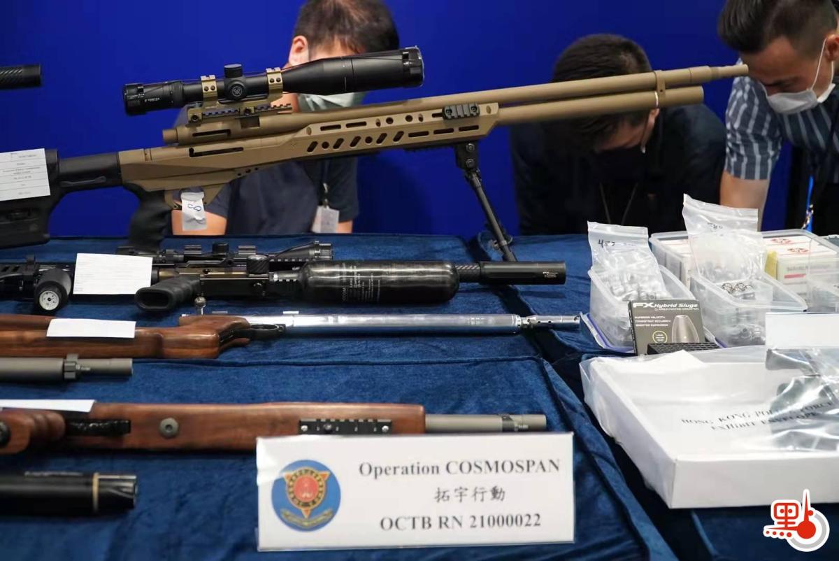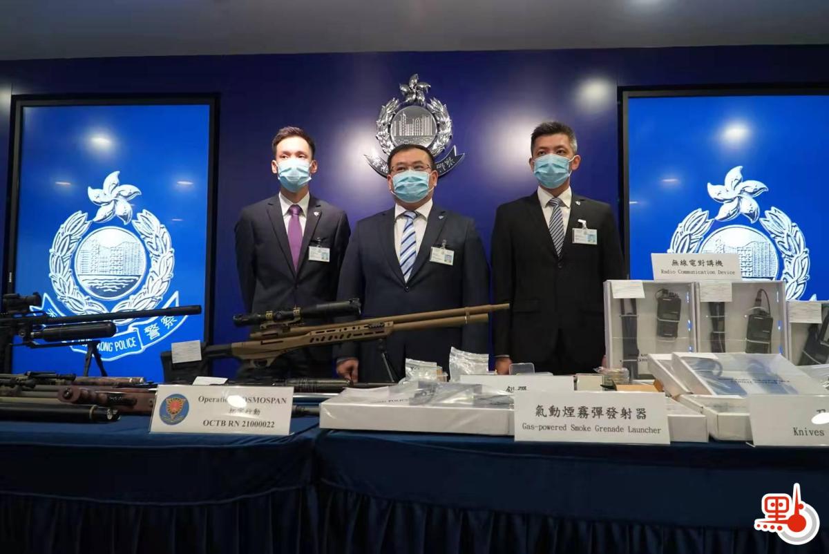 警方有組織罪案及三合會調查科警司陳昕、總督察蘇志兵及高級督察林欣鎏今日(14日)出席記者會表示,警方早前接獲線報,經深入調查後,搗破一宗涉及無牌管有槍械、管有攻擊性武器、無牌管有無線電通訊器、無牌輸入或輸出戰略物品及無牌經營槍械的案件,拘捕10人,年齡介乎21至46歲。