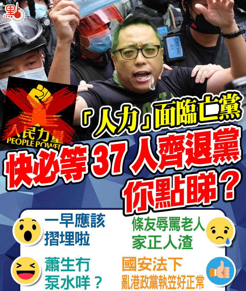激進反對派「人民力量」爆退黨潮,該黨前主席劉嘉鴻前日喺fb宣布,響應該黨執行委員蔡中平嘅呼籲,自己同埋另外36位黨員,包括正在還柙的譚得志(快必)等,退出「人民力量」即時生效,指事情變質,留守已無必要,棄之亦不可惜。