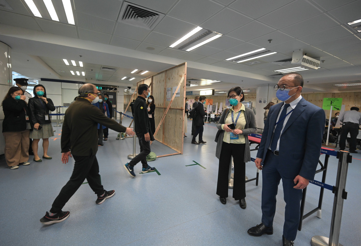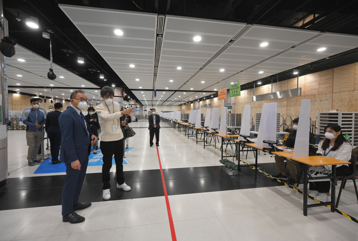 曾國衞先後到訪位於落馬洲支線、羅湖及香園圍邊境管制站的投票站,聽取選舉事務處人員講解投票站和點票站的設計,以及投票當日的檢疫和出入境安排。他又參觀了3個管制站投票站的選民通道,並視察工作人員進行實習和模擬情境演練。