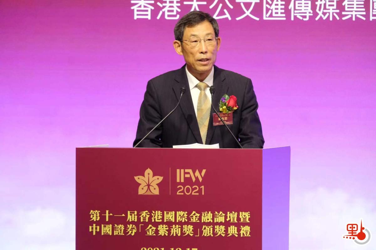 由香港大公文匯傳媒集團舉辦的第11屆香港國際金融論壇暨中國證劵金紫荊頒獎典禮今日(17日)舉行。全國政協委員、香港大公文匯傳媒集團董事長姜在忠致辭時表示,2021年是「十四五」規劃的開篇之年,也是我國全面建成小康社會、實現第一個百年奮鬥目標之後,乘勢而上開啟全面建設社會主義現代化國家新征程、向第二個百年奮鬥目標進軍的起始元年。本屆「金紫荊獎」活動以「開篇十四五 啟航新征程」為主題,期望深入探討當前經濟形勢,更加完整、準確、全面地把握新發展階段,貫徹新發展理念,構建新發展格局,交流思想、研究策略、把握機遇,以更加昂揚的姿態邁進新征程、建功新時代。