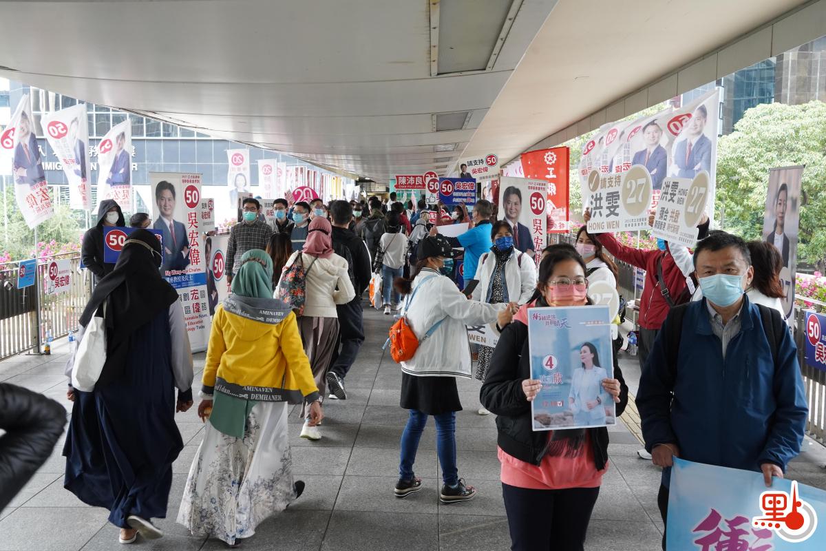 當中立法會選舉選委會界別選舉氣氛炙熱,候選人及義工於灣仔入境處大樓天橋處接觸市民,繼續拉票,高呼口號爭取支持。