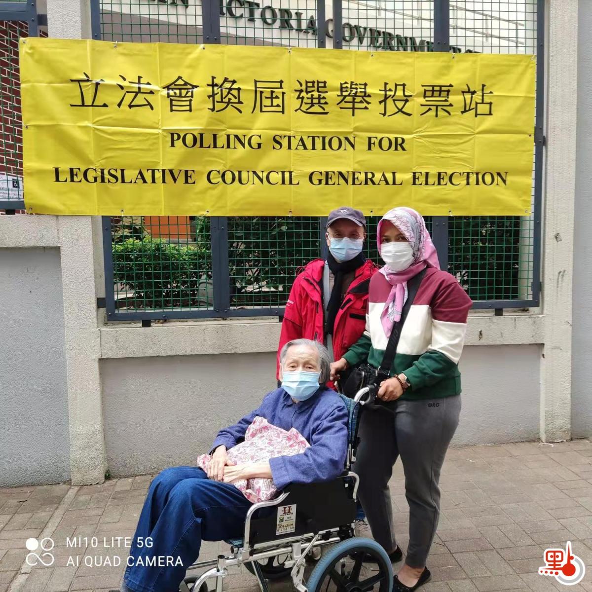 此外,93歲華潤退休老員工許大姐(華潤原董事巢永森夫人)在家人和外傭的陪同下,也親自來到票站,投下神聖的一票。