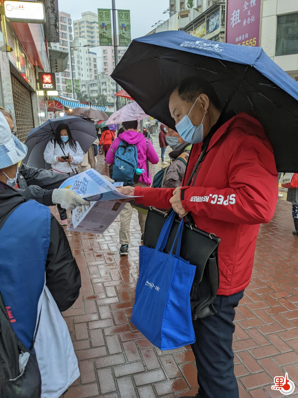早上7點半,全港120個街派點分別開派《大公報》、香港《文匯報》免費報和特刊,不少派點已排滿了等候取報的人龍,儘管今日下雨、寒冷,還懸掛着一號風球,但不阻市民排隊取閱兩報和特刊的熱情。市民梁先生表示,《大公報》近期恢復了街派,非常接地氣。他說,自己排了10幾分鐘等候《大公報》特刊開派,並讚特刊「編得靚」。陳太則是香港《文匯報》的忠誠讀者,她說,期待選出新立會後,香港會更順。不少上班一族和年輕人也停下腳步,取閱特刊。
