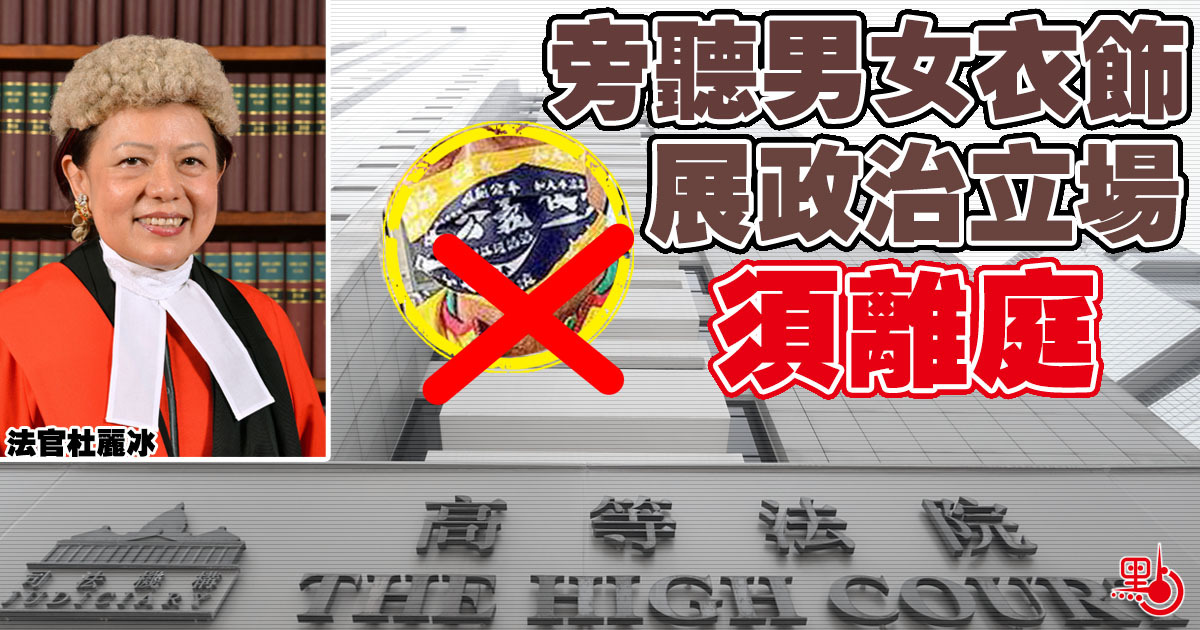 高等法院昨日審理非法「35+初選」案中,「職工盟」前主席吳敏兒申請保釋期間,有旁聽席人士圖在庭上旁聽席展示政治立場,結果要到法庭延伸範圍旁聽聆訊直播。國安法指定法官杜麗冰在庭上重申,法庭不容許任何與政治有關的行為。