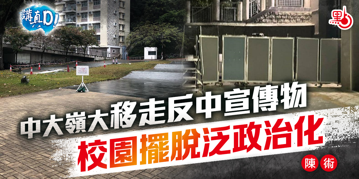 至於嶺大,根據其發言人回覆,大學最近重新檢視和評估校園內可能構成法律或安全風險的物品,為保障大學社群的整體利益,相關物品已被清除,或移除並妥為儲存。綜合港大、中大以至嶺大近日採取的行動,筆者認為有三點值得市民注意。第一,就是這些放在校園的反中宣傳物,不少都是從未得到校方批准而擺放;第二,這些宣傳物所象徵的,乃是一個又一個反特區政府甚至反中央的「標誌」;第三,則是繼續容許這些反中之物留在校園,若要承擔法律責任,由誰來承擔?把「柱」、「像」放在校園的學生?還是一向反對這些宣傳物、「躺着也中槍」的校方?