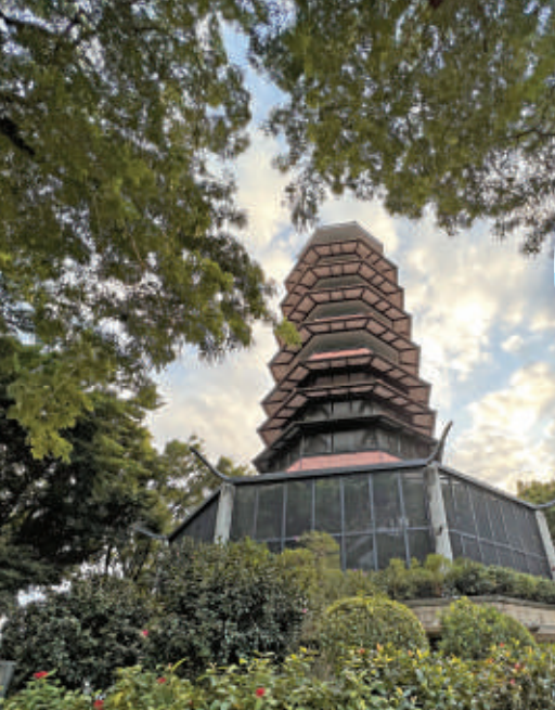從輕鐵水邊圍站落車,臨近的元朗公園裏,有一座矗立在30米高的水牛嶺上、外表如中國傳統寶塔建築的「打卡賞景一絕」百鳥塔。此百鳥塔為元朗公園一個突出的標誌,紅色的7層觀景塔具有中國建築的特色,樓高30米。遊人登臨塔上,便可瀏覽整個元朗市的景色;遠眺則屏山、廈村、十八鄉和天水圍新市鎮亦映入眼簾。樓梯的迴旋處絕對是一個打卡熱點,而不少文青亦會特意前來打卡。雖然爬上多層樓梯有點吃力,然而當走到塔上,就會將一切的辛苦忘卻。