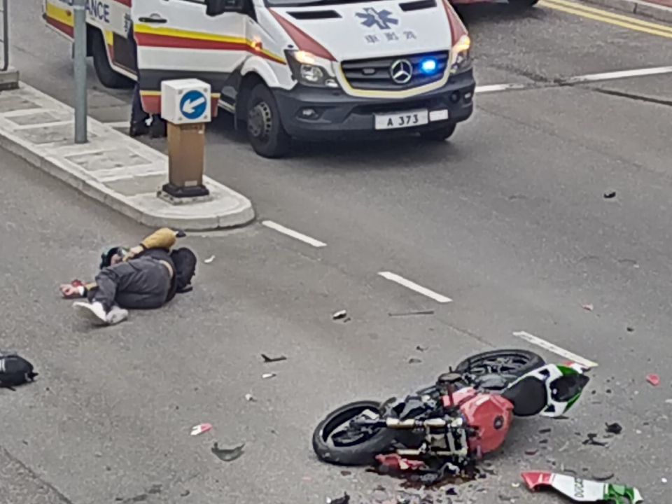 今日(26日)接連發生兩宗涉及電單車的交通事故。下午2時許,新蒲崗爵祿街彩虹道交界,一輛的士及一輛電單車相撞,電單車司機被抛出車外倒地,頭部及心口受傷浴血。救護員到場後,電單車司機清醒被送院治理。意外原因目前仍待調查。
