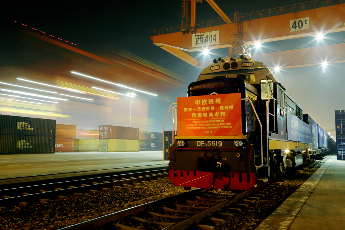 雖然由於疫情,西安仍處於封閉管理之中,但中歐班列長安號暢通中外貿易的腳步卻並沒有停下。2022年1月1日零時,滿載着50個集裝箱的電子配件、服飾百貨等品類的中歐班列長安號(西安—聖彼得堡—曼海姆)跨境電商專列,從西安出發,一路奔向德國曼海姆。這不僅是2022年西安發出的首趟中歐班列,同時也是西安開行的首趟經聖彼得堡、穆克蘭至曼海姆的中歐班列,該線路的開行也為陝西又增添了一條通往歐洲的國際物流大通道。