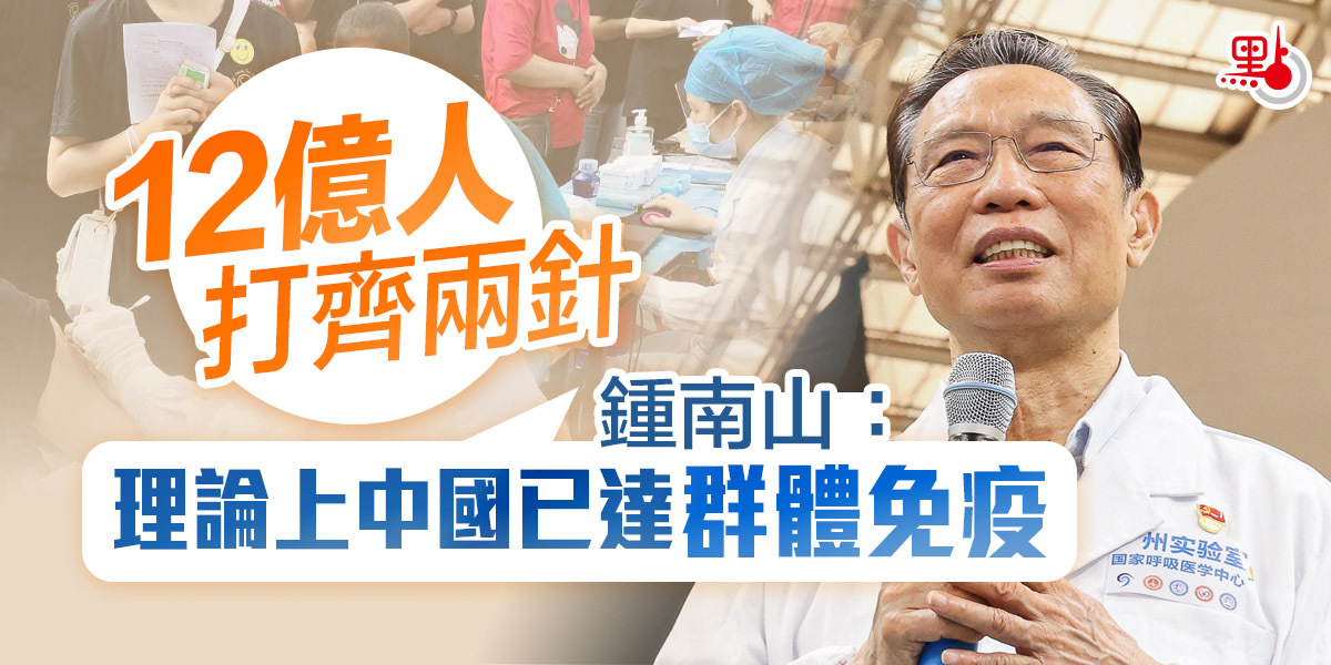 鍾南山指出,疫苗充分注射到一定比例的人口能夠達到群體免疫的目的,根據評估,理論上來說中國已達到群體免疫目標。新冠疫苗原本是應對原始病毒株,現出現Delta變種病毒及新變種病毒Omicron,呼籲民眾接種疫苗加強針。