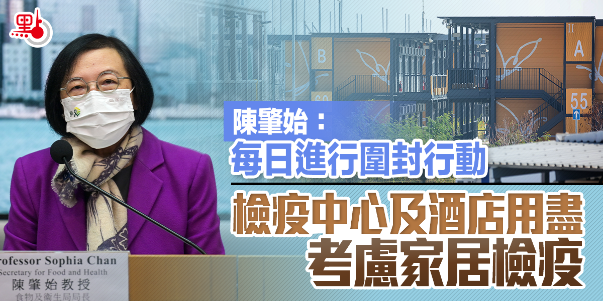 陳肇始提到,本港檢疫設施緊張,由於Omicron變種病毒傳播速度很快,1至2宗個案可衍生100多人感染,竹篙灣檢疫中心大概用了1500個單位,但其他備用設施,包括鯉魚門度假村、八鄉檢疫中心和西貢戶外康樂營提供的單位不多,可能出現幾宗個案就會滿額。目前有3間檢疫酒店準備就緒,如密切接觸者很多,檢疫中心甚至酒店已經用盡,當局會考慮家居檢疫,但需要其他政府部門配套和協助。
