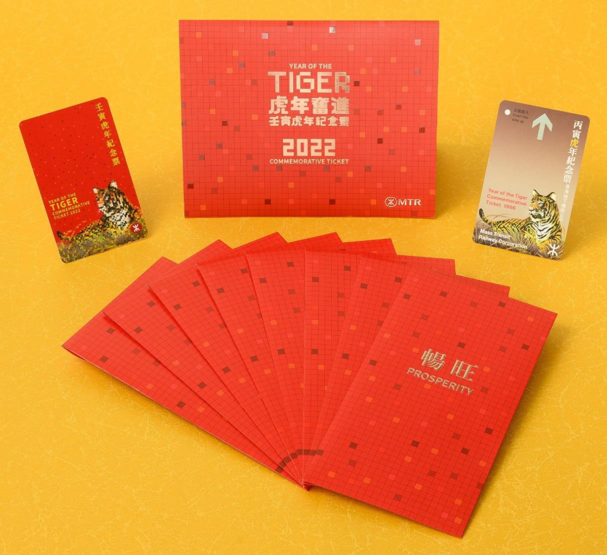 港鐵今日(10日)宣布,為慶祝壬寅虎年來臨,推出限量版「虎年賀年車票」套裝,每套車票套裝售價為港幣100元,內含2張車票、一個票套和8個紅色利是封,將於本周六(15日)公開發售。