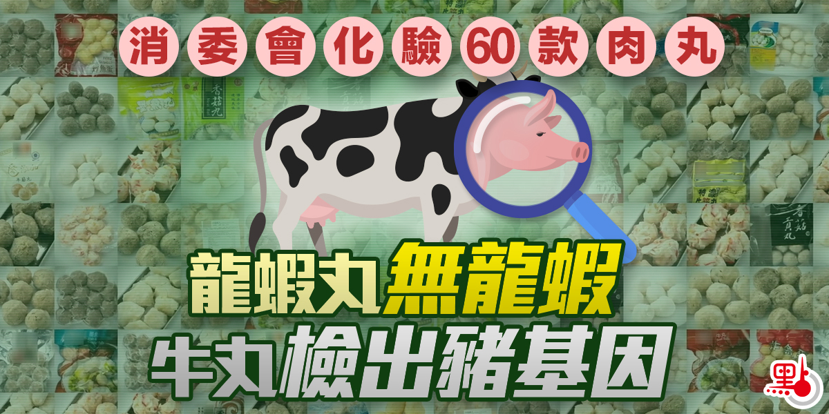 測試發現,全部10款龍蝦丸樣本均檢不出甲殼類動物基因,但其中一款標明成份包括龍蝦,已轉交海關跟進是否違反商品說明條例。另外,20款牛丸及牛筋丸當中,13款驗出豬和雞的基因,其中2款樣本的豬基因比例更超過50%,亦有樣本牛基因只佔13%,其餘全屬雞基因。消委會提醒有宗教信仰人士選購肉丸時,宜注意肉丸所含的肉類成分。10款墨魚丸當中,7款有魷魚基因,比例最高達百分百,即實際上等於魷魚丸。10款貢丸樣本中,有一半檢出純豬的基因,另外一半則檢出含雞的基因,最高1款含55%。
